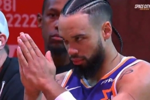 火箭为狄龙播放致敬视频 后者双手合十&并向全场观众示意❤️